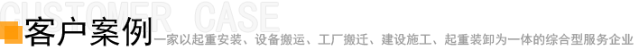 • 公司以往從事過:冷水機組、發電機組、大型空調、鍋爐、燃氣機、機床、精密儀器、印刷機、干洗機、注塑機、壓力機、配電機組、高層水塔